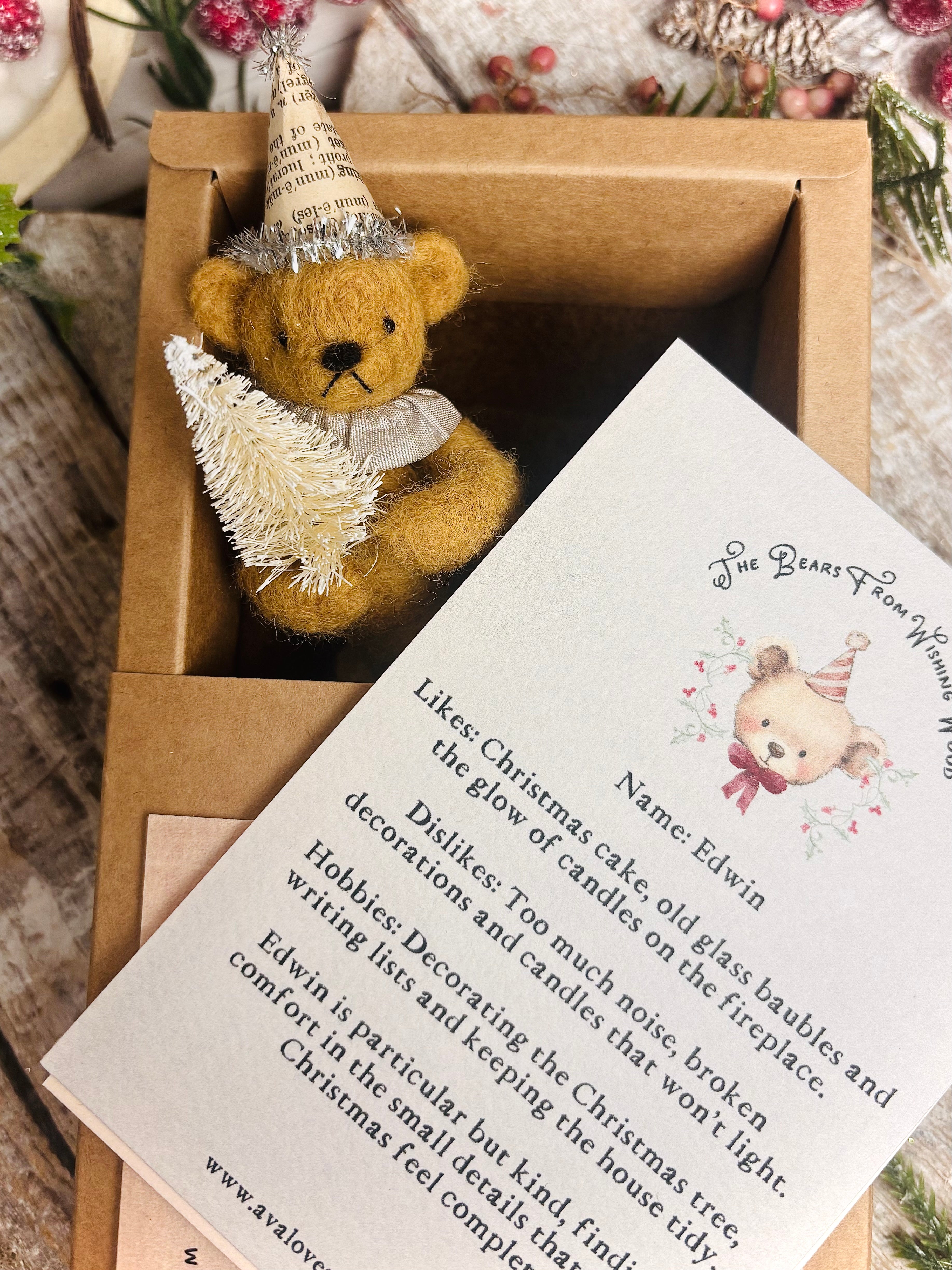 Edwin is particular but kind, finding comfort in the small details that make Christmas feel complete.