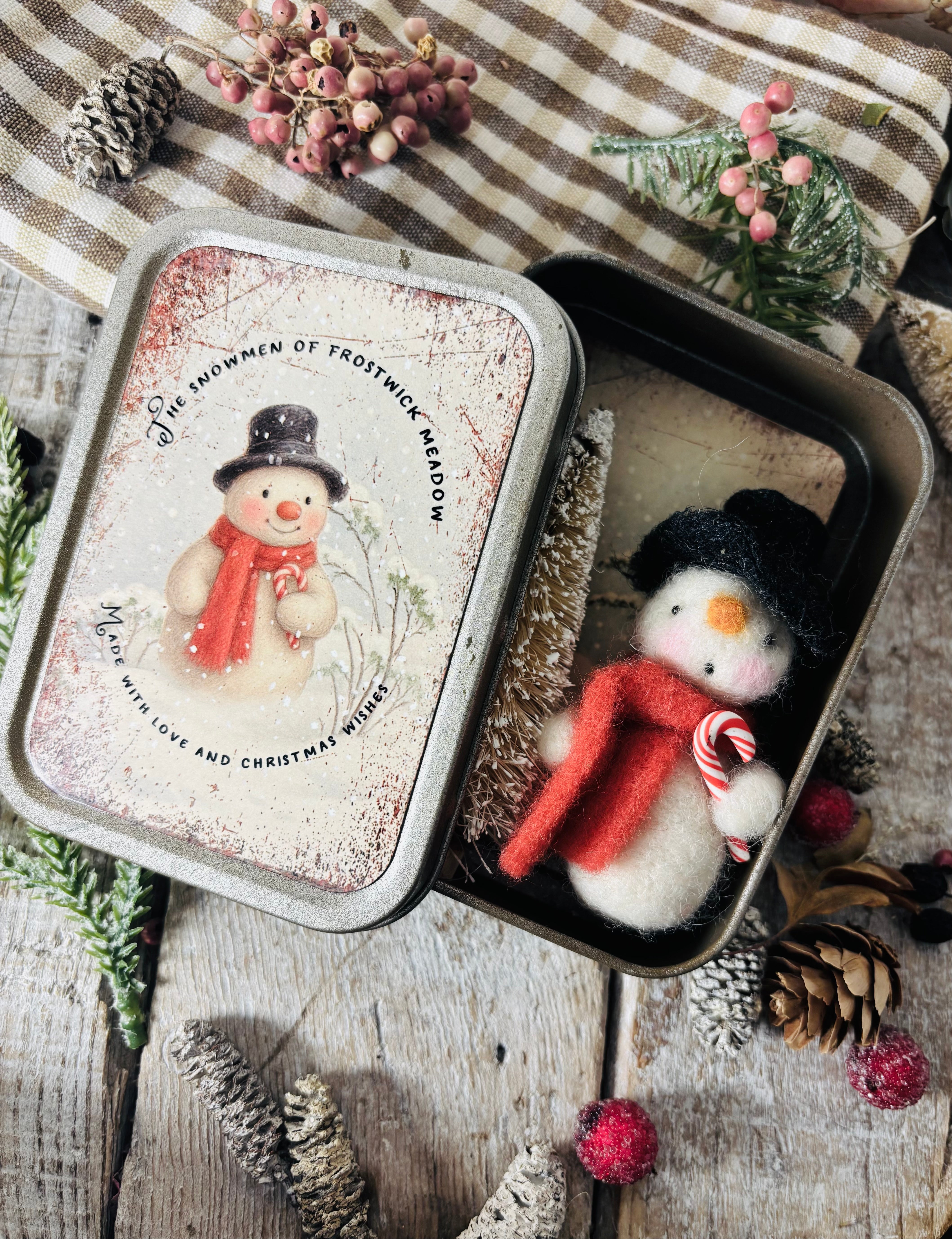 Lovingly handmade from carded wool, each snowman is slowly and gently needle felted by hand.