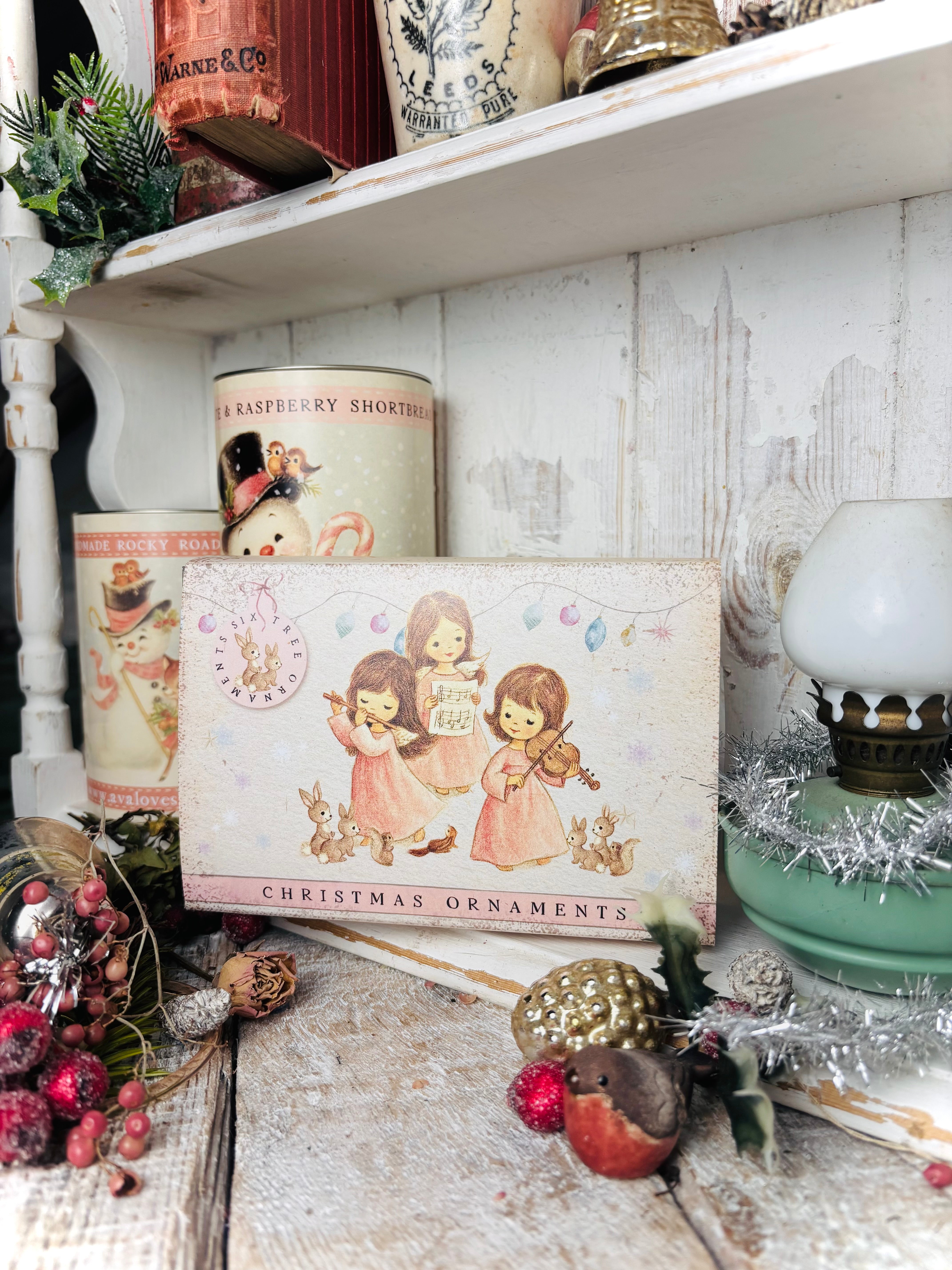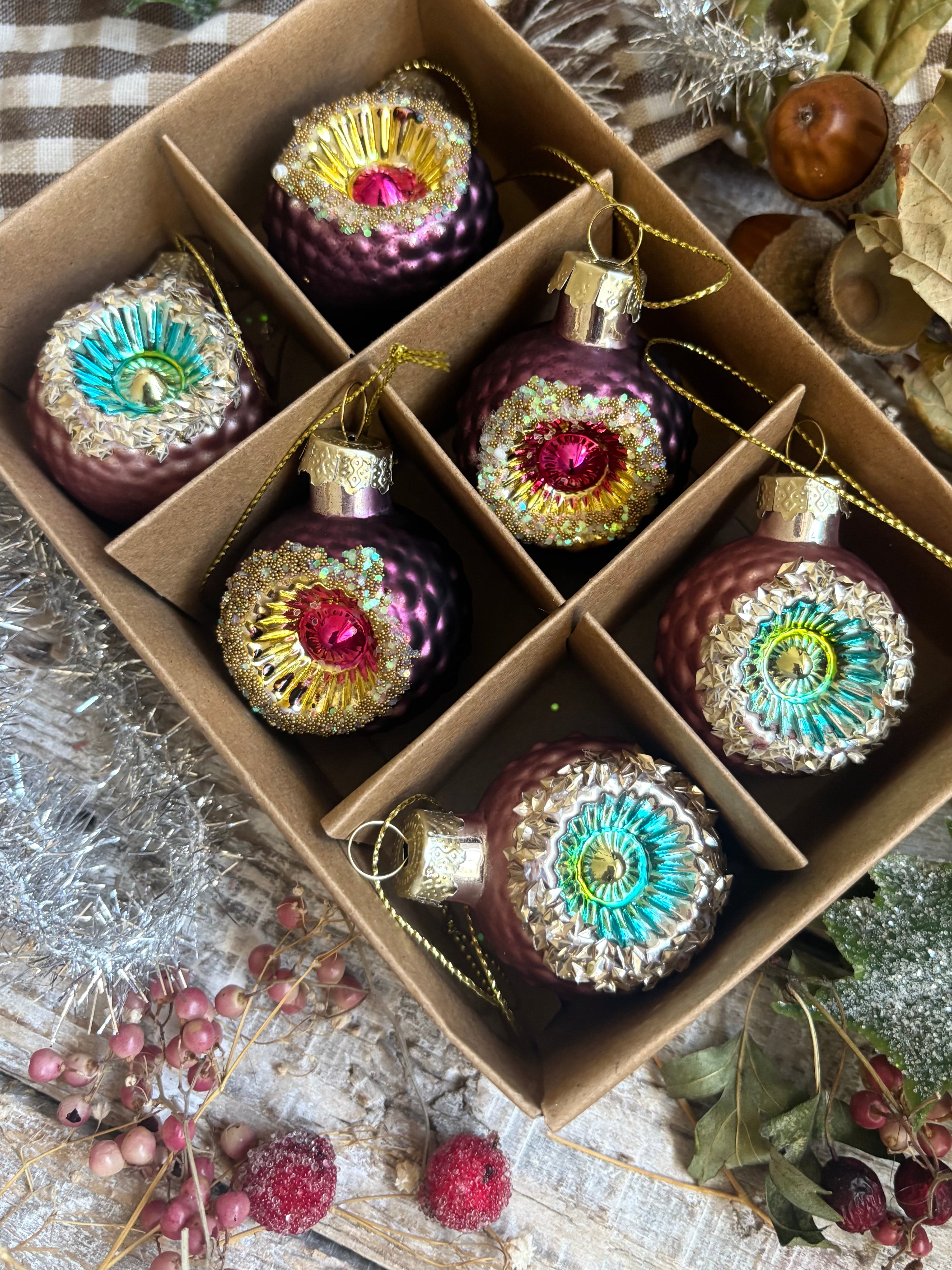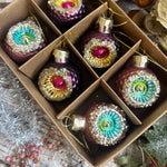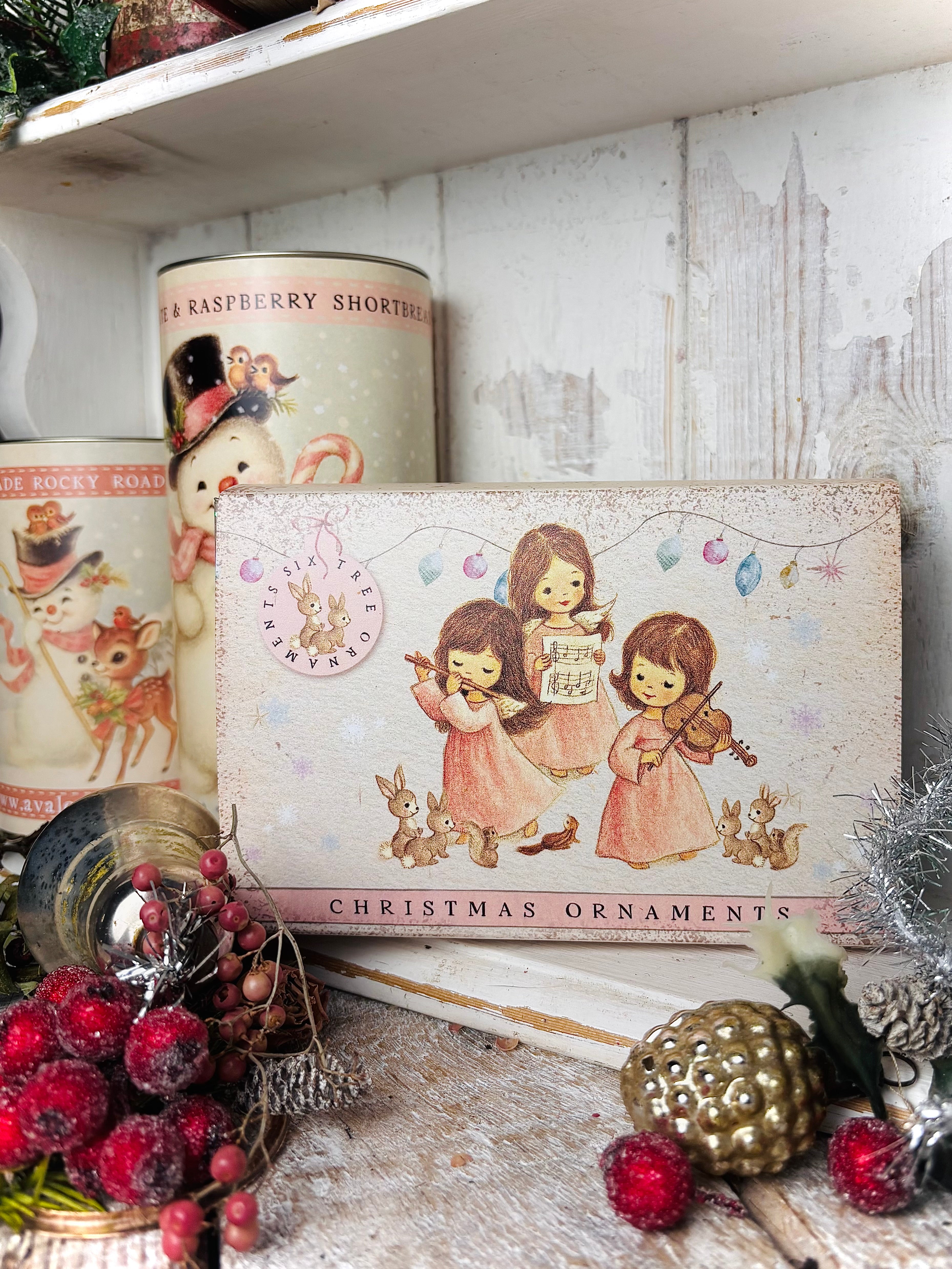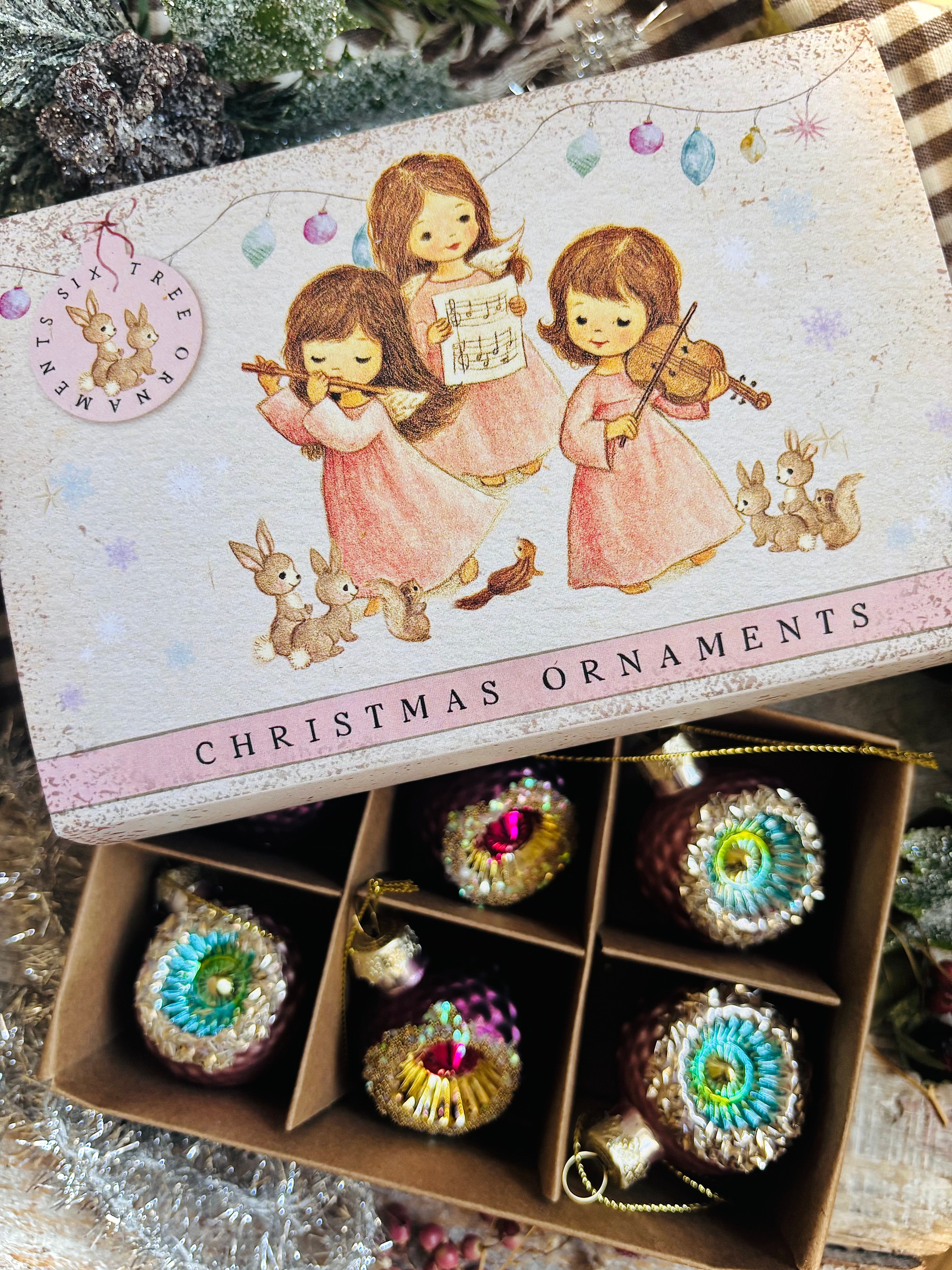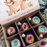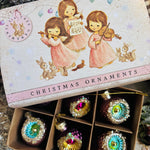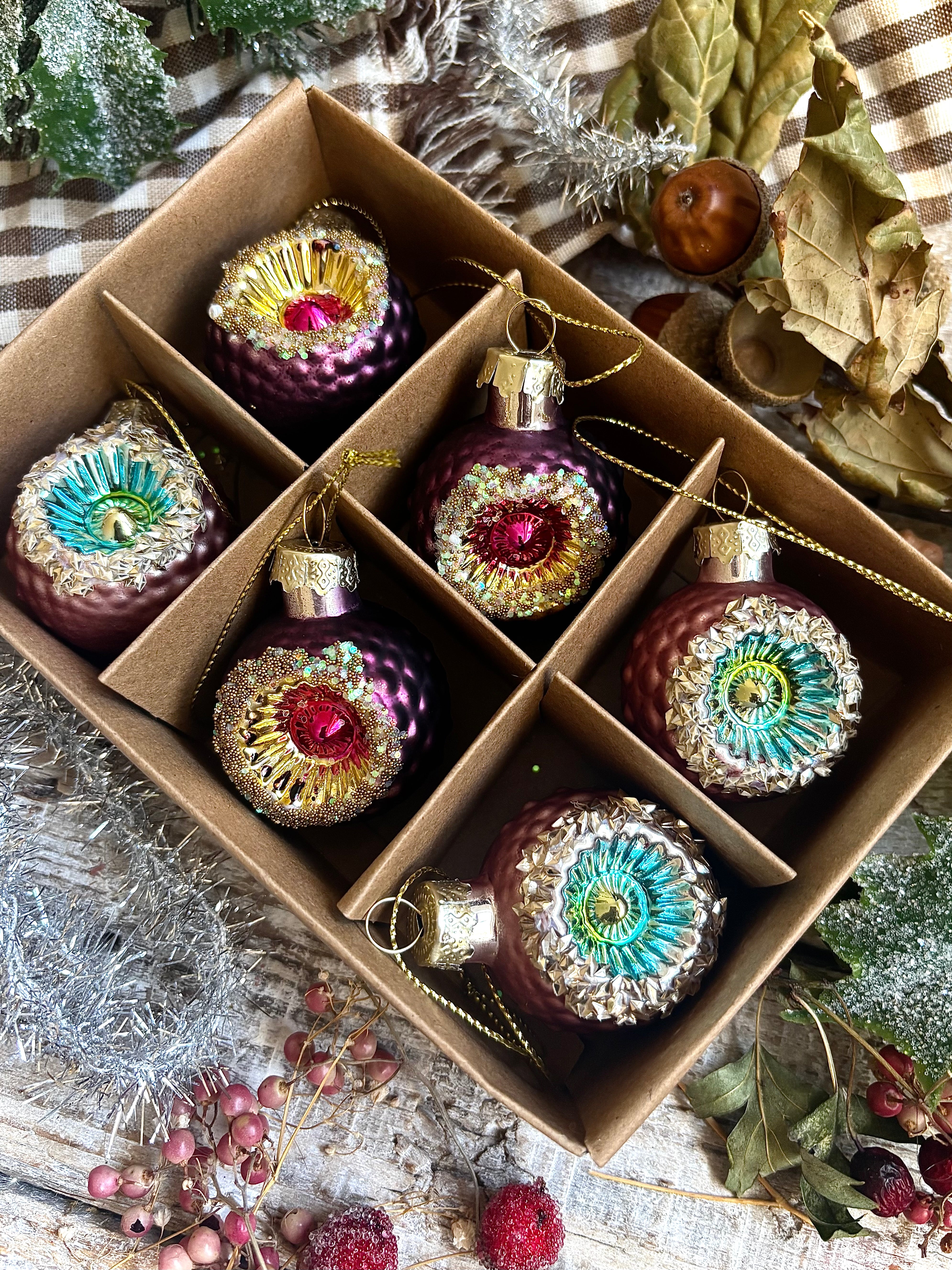 I am an avid collector of these types of decorations and I have wanted to offer a replica set for a long time. Finally I have sourced some very pretty sets of baubles in a pink hues mix. I have packaged them in super cute packaging reminiscent of the Christmas designs of years gone by.